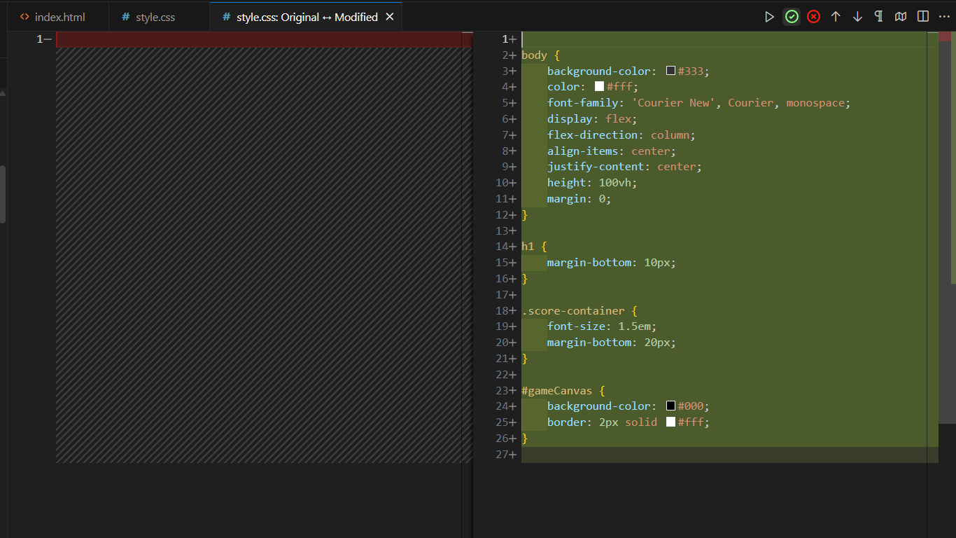 For this example, I just wanted to change the colour of the Snake in the game, so I gave a follow-up prompt in the chat.