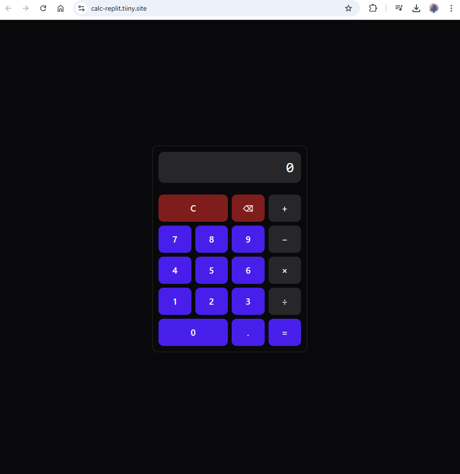 Here is what my calculator looks like after a few iterations using Replit AI and then publishing it through Tiiny host.