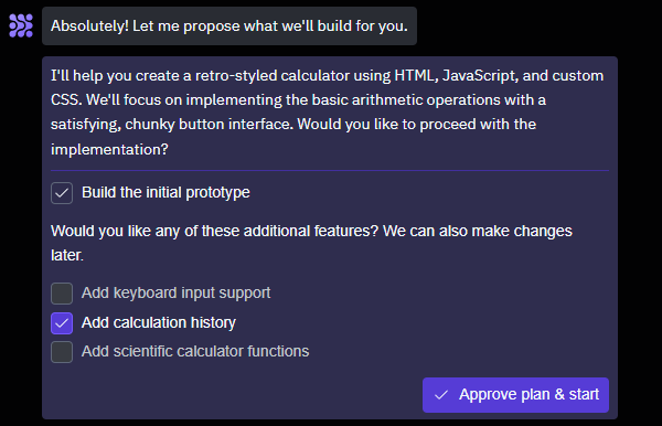 “Build me a static calculator app in HTML and JS.”