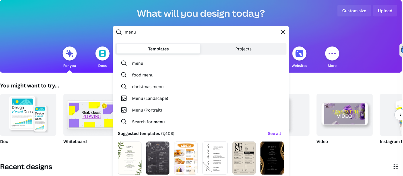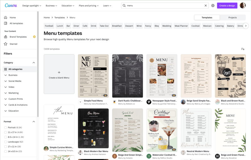 You’ll be taken to a page with hundreds, if not thousands, of menu template choices. Scroll through the choices, choose the one that best represents your brand, and edit it to create your final design.
