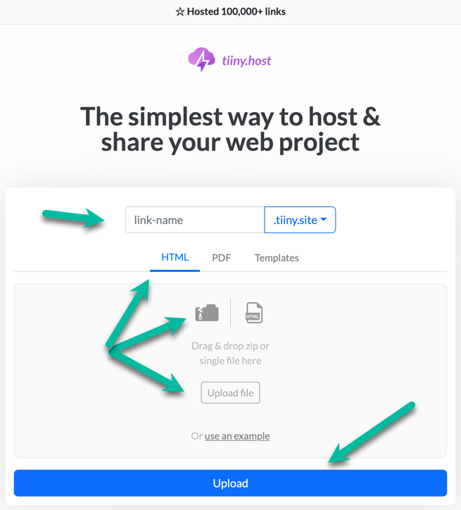 - To finish the process and post your file to Tiiny.host, click the big, blue “Upload” button.